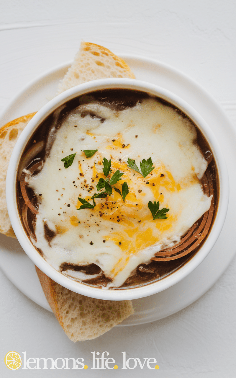This French onion recipe is one of those winter soup recipes that make your home smell amazing as caramelized onions melt with rich broth and toasted bread with melted cheese on top bringing comfort and elegance to every spoonful so it is the perfect dish for a quiet evening when you want warmth and flavor.
