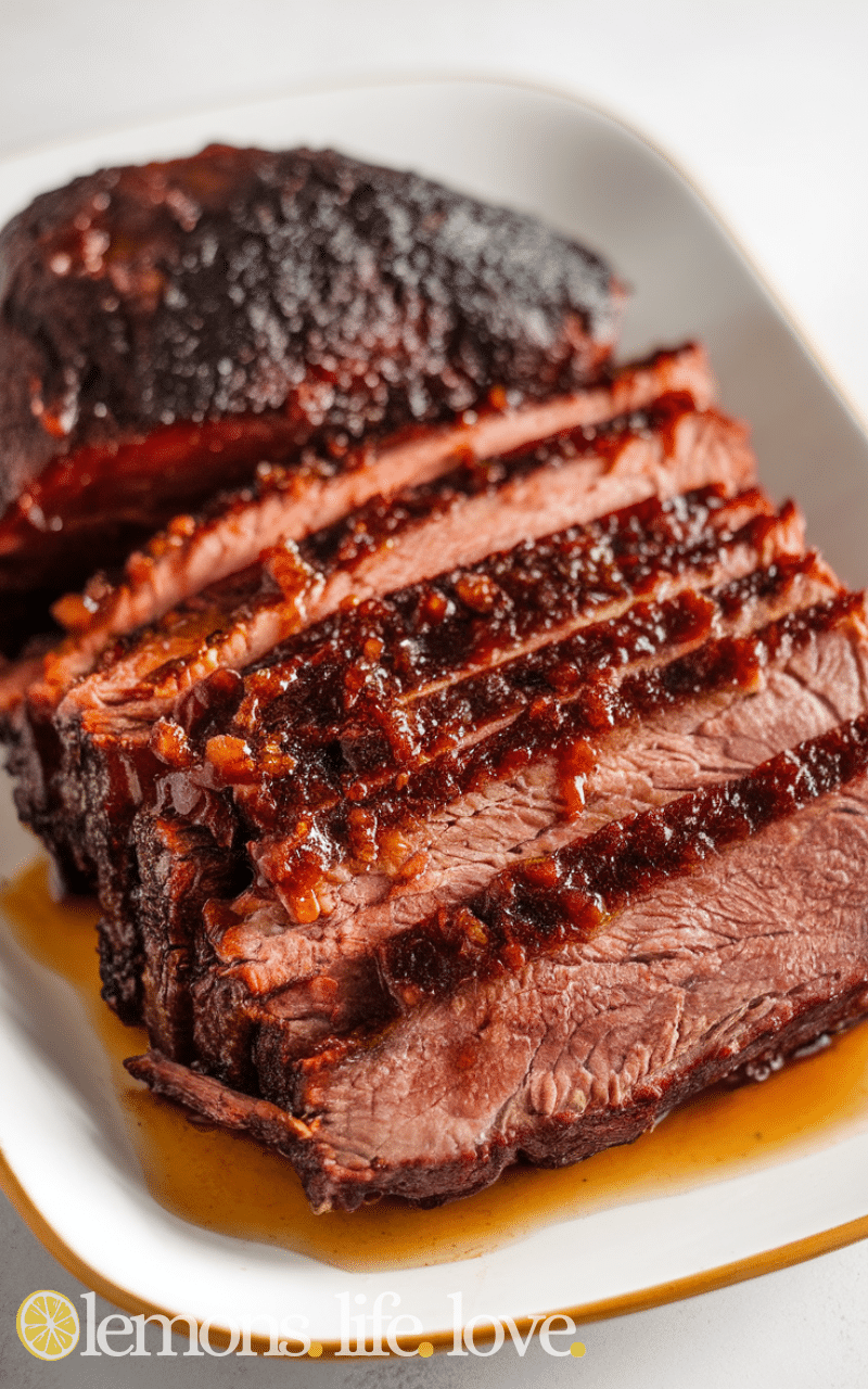 This smoked brisket recipe features a sweet and smoky maple‑bourbon glaze. The smoked brisket brings deep flavor, and the glaze adds a caramel touch. It’s great for sharing.