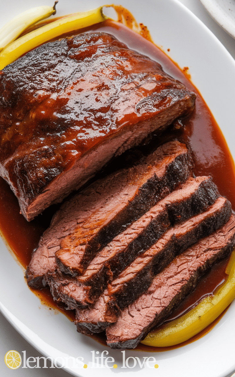 - Arrange sliced smoked brisket and spoon sauce on top.