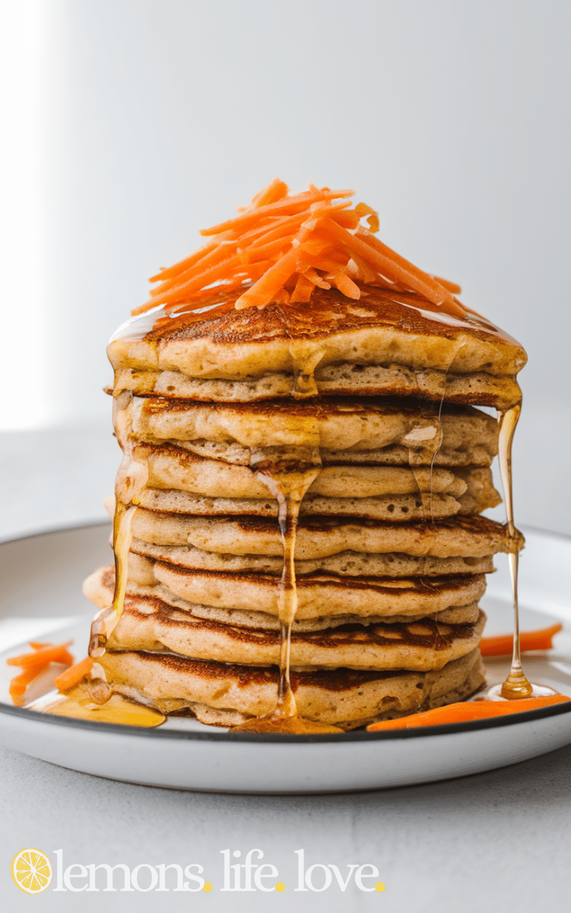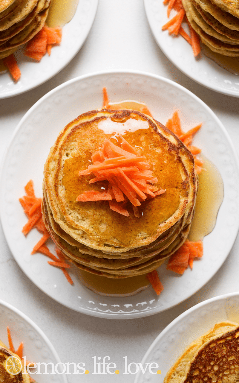 You know what I always say, I can never get a pancake to look perfectly round and that’s totally fine because life’s not perfect and neither are pancakes and that’s kind of the charm right I’ve been making carrot pancakes for years and I’ll be honest sometimes the first one sticks to the pan and sometimes I forget the cinnamon and other times the carrots aren’t grated fine enough and they look a little funny but you know what they still taste amazing and that’s what matters I call it a happy mess and my kids call it breakfast magic and it always makes me smile because they eat them with so much joy.