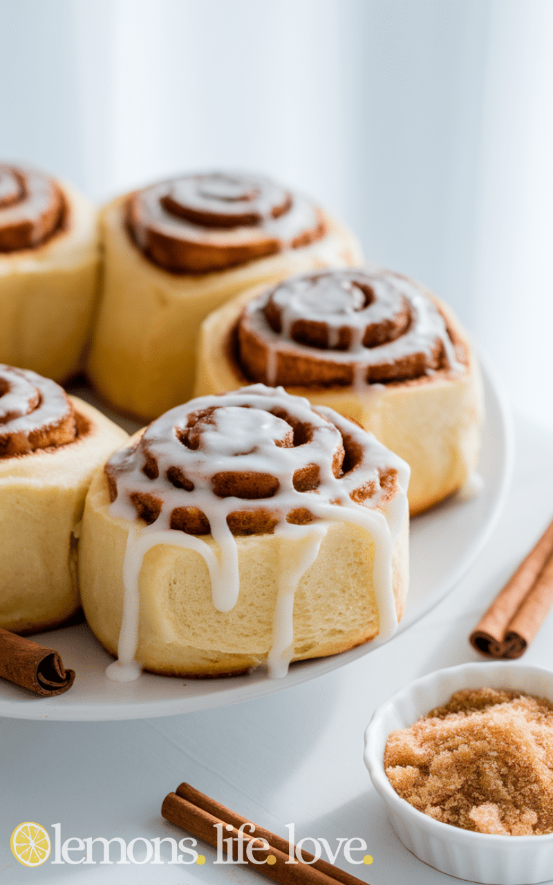 Cinnamon rolls taste sweet, soft, and cozy. The bread is fluffy, the filling is gooey with cinnamon sugar, and the frosting is creamy and sweet.