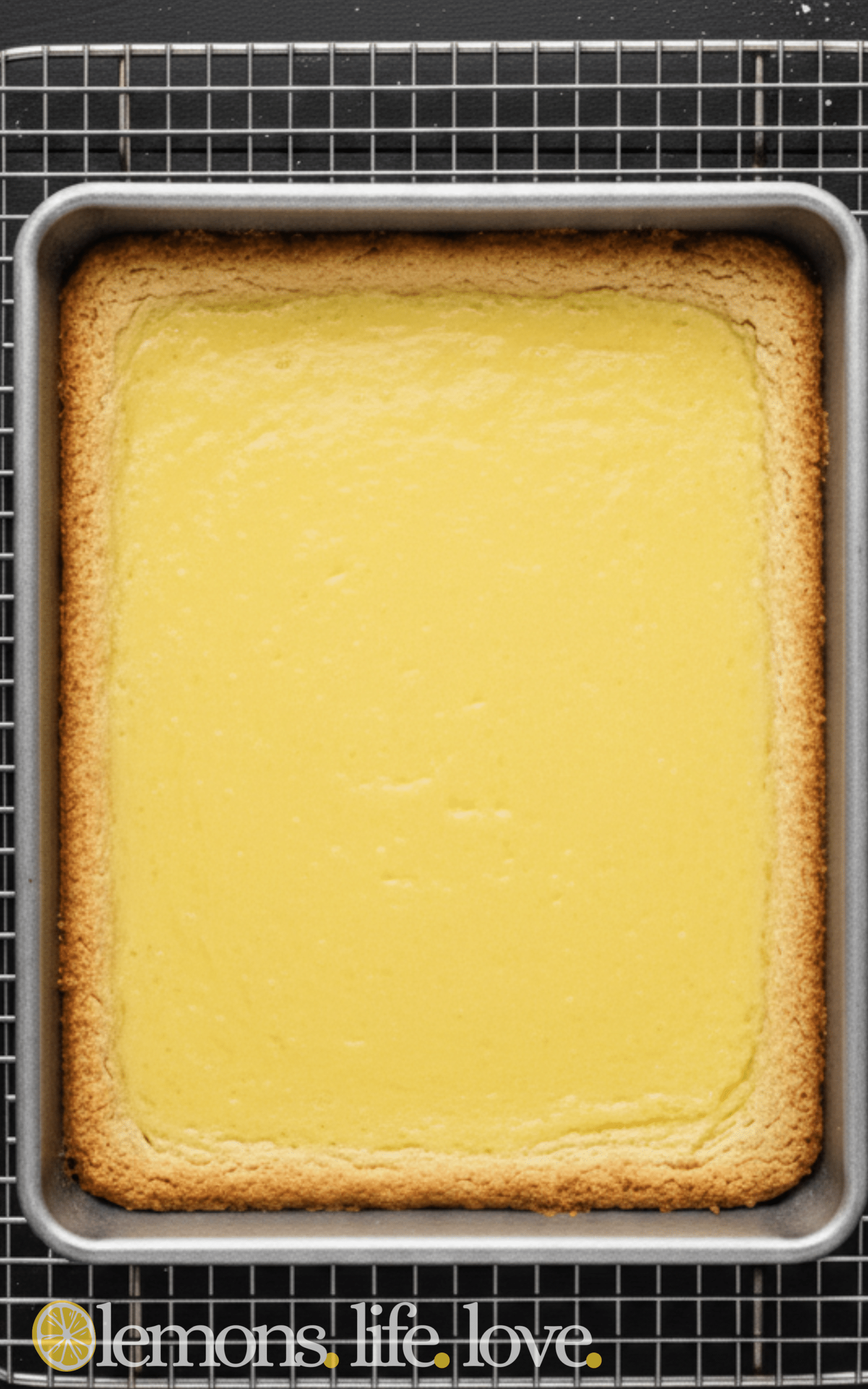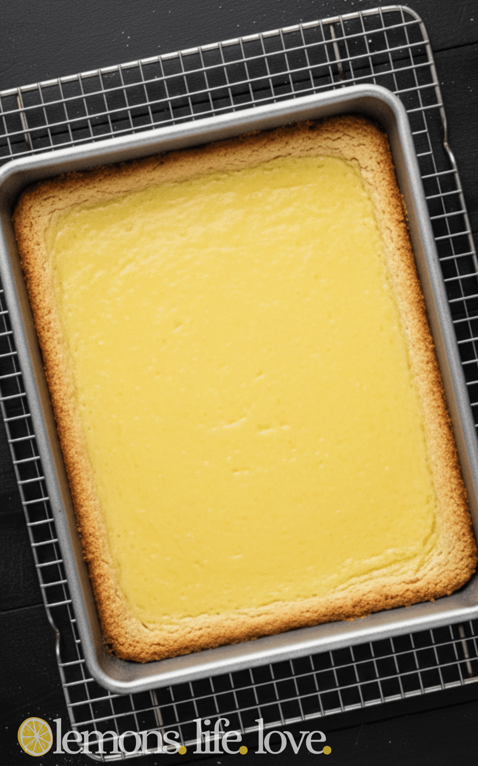 After baking, let the lemon bars cool completely on a cooling rack. This can take about 1 hour. Cooling is important because cutting them while hot can make a mess.