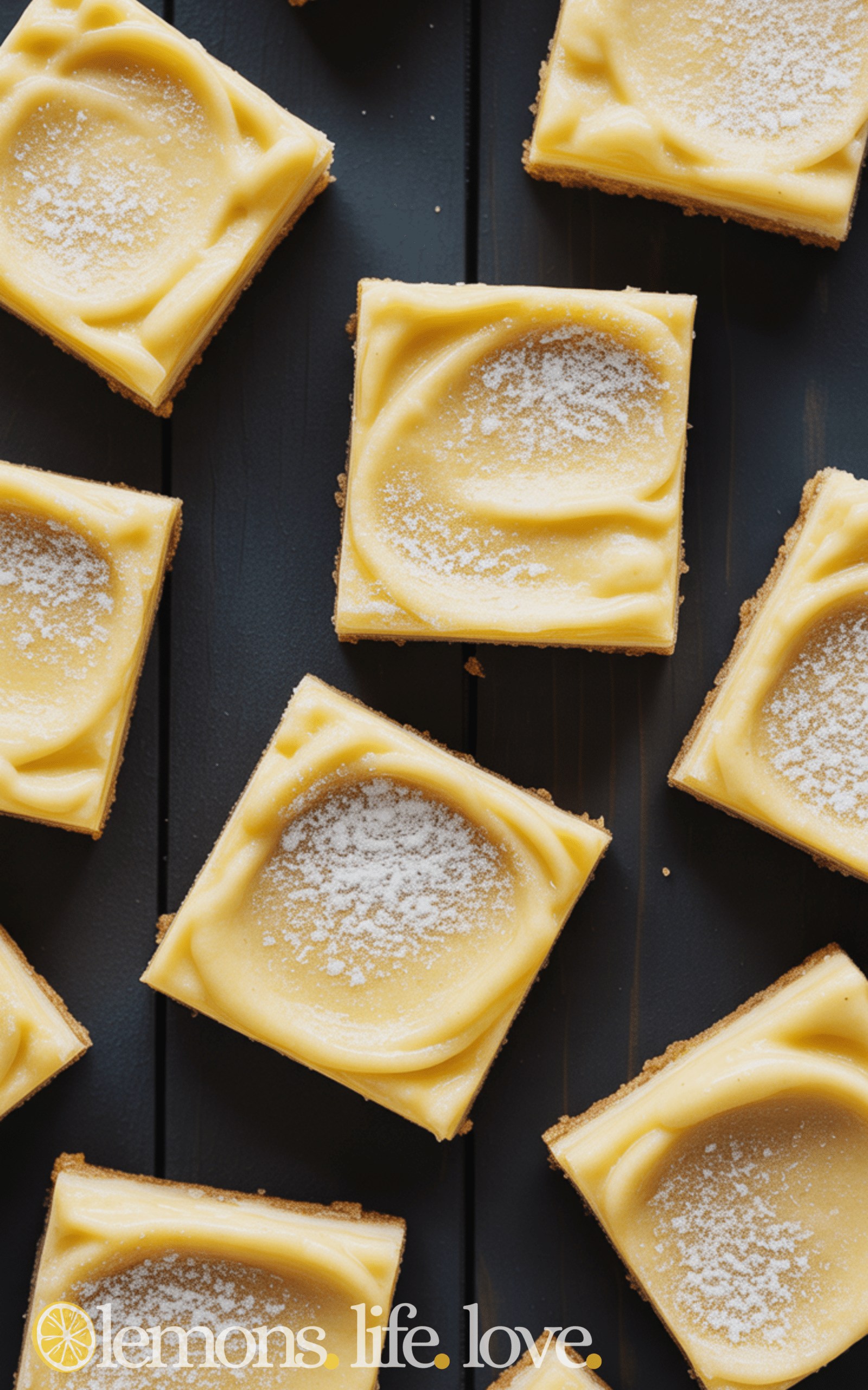 Sweet and tangy lemon bars with a soft buttery crust, perfect for dessert or snacks.
