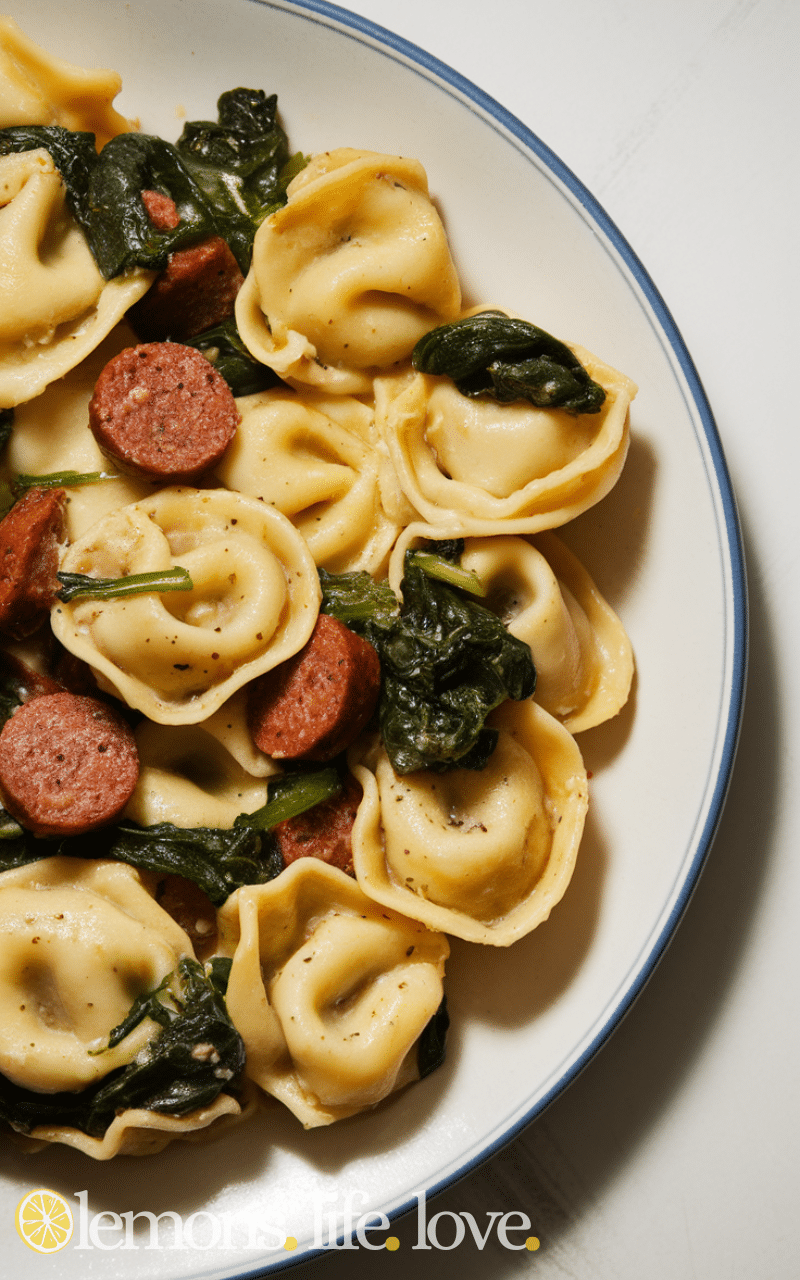 This cheese tortellini with sausage and spinach is hearty and delicious because the savory sausage pairs perfectly with tender cheese tortellini and fresh spinach. Every bite is full of flavor and satisfying. You can cook the sausage first for extra aroma, then toss it with cooked cheese tortellini and wilted spinach for a quick dinner. Adding a little grated Parmesan on top gives an extra cheesy touch. The flavors blend beautifully, making it an easy, comforting meal because the cheese tortellini carries all the delicious taste of sausage and greens naturally, perfect for family meals.