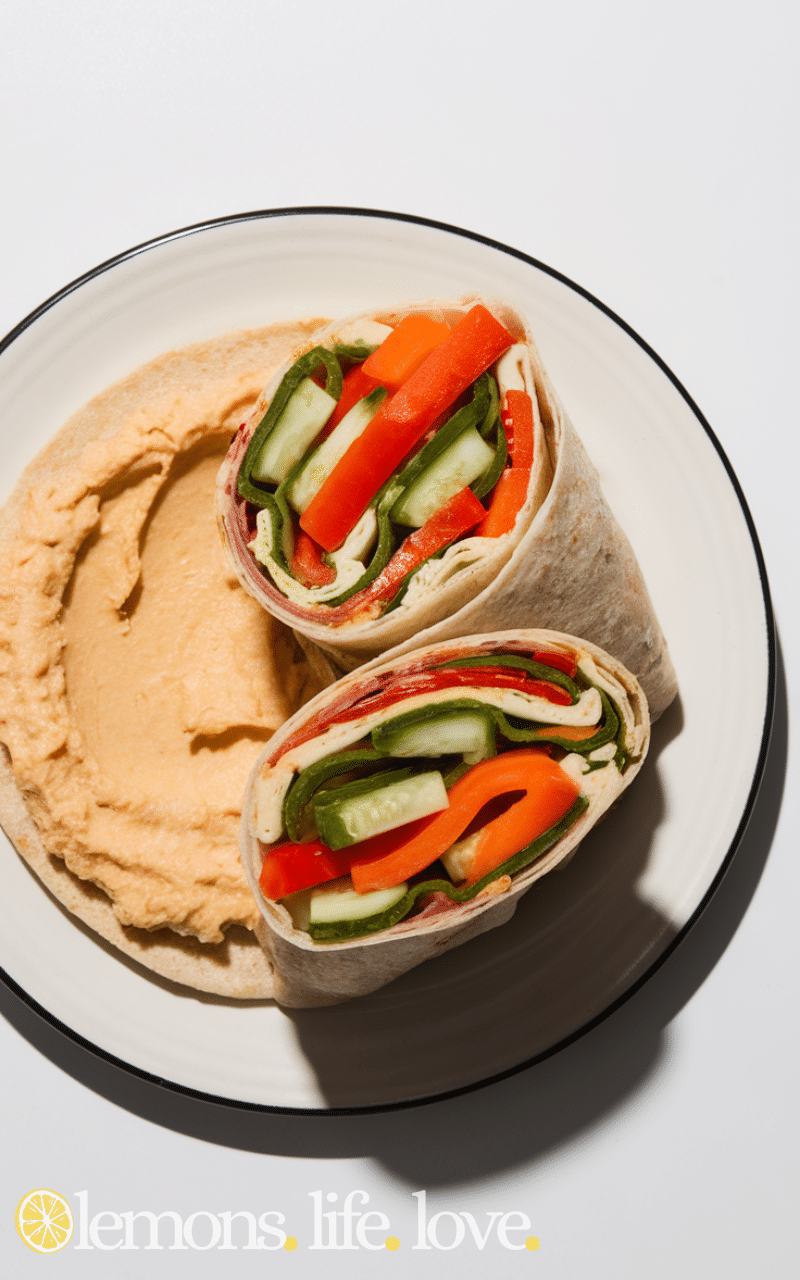 Veggie and Hummus Wrap is a colorful and healthy cold lunch idea for kids. It is packed with fresh vegetables and creamy hummus, making every bite delicious and satisfying. It is simple to make and can be customized with your kids’ favorite veggies.