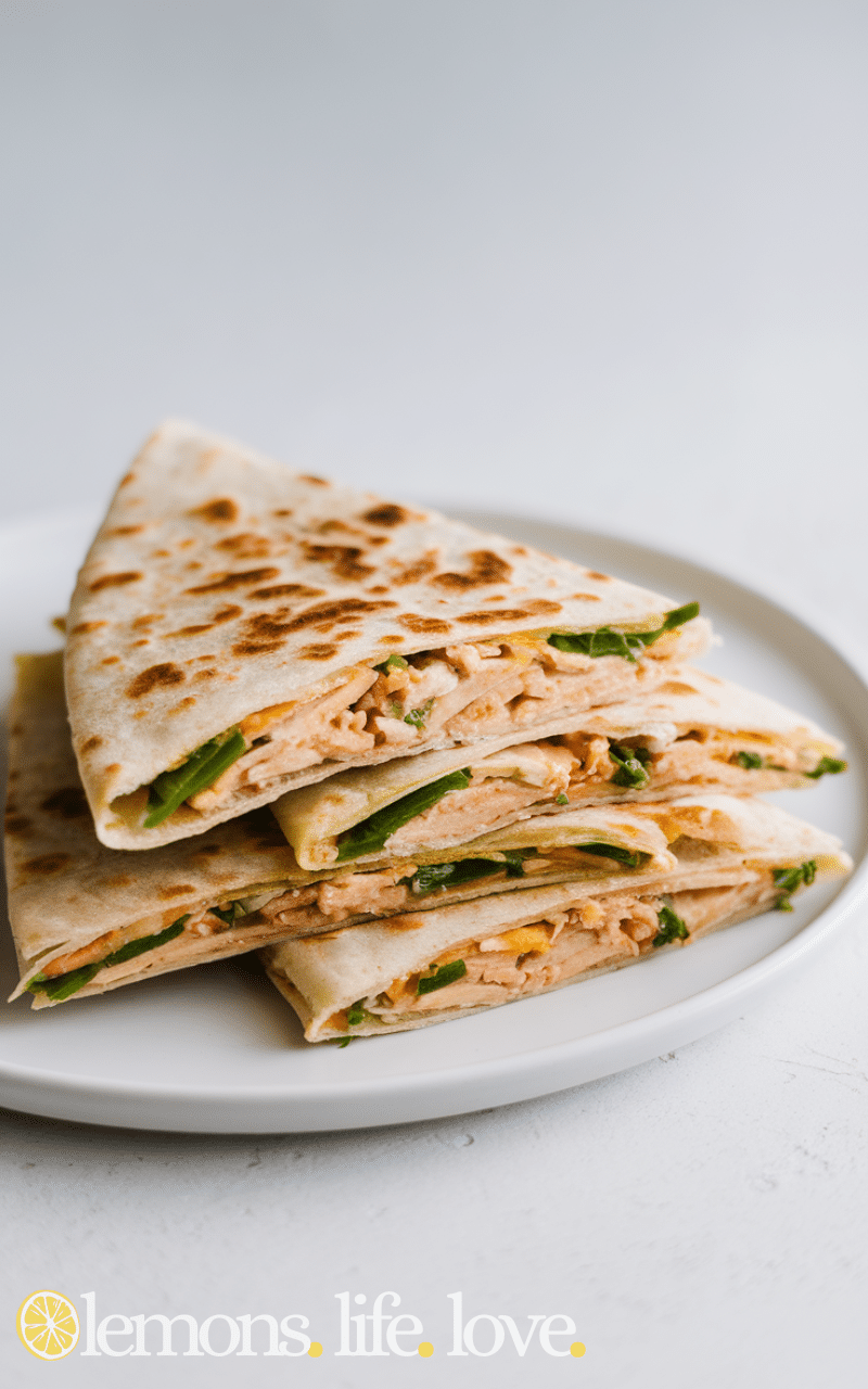 Cold Chicken Quesadilla is tasty and stays delicious even when chilled. Cut into triangles for easy eating, and pair with mild salsa or yogurt for dipping.
