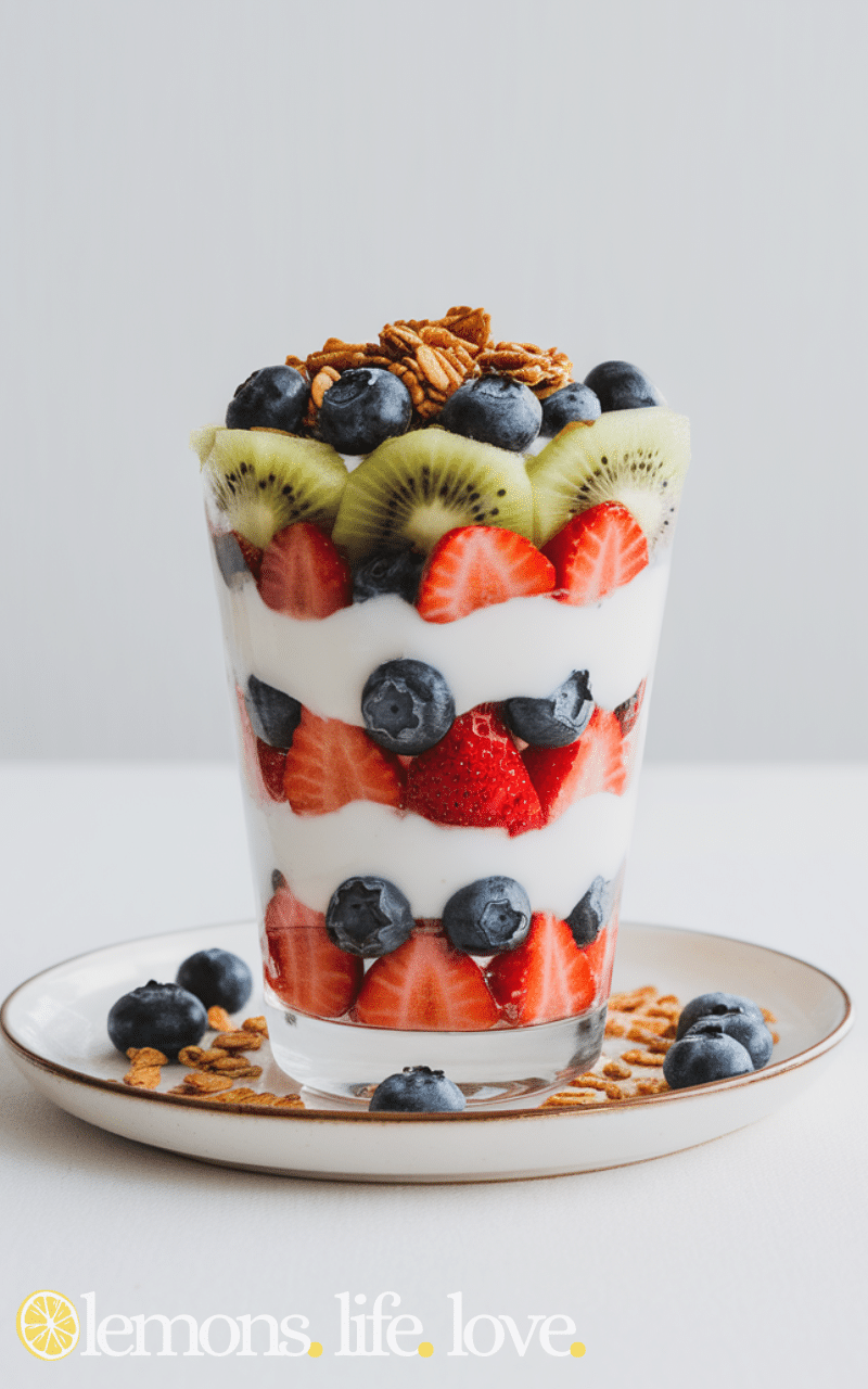 Fruit and Yogurt Parfait is a refreshing and healthy cold lunch idea for kids. It layers creamy yogurt with fresh fruits and crunchy granola, making every bite enjoyable and colorful.