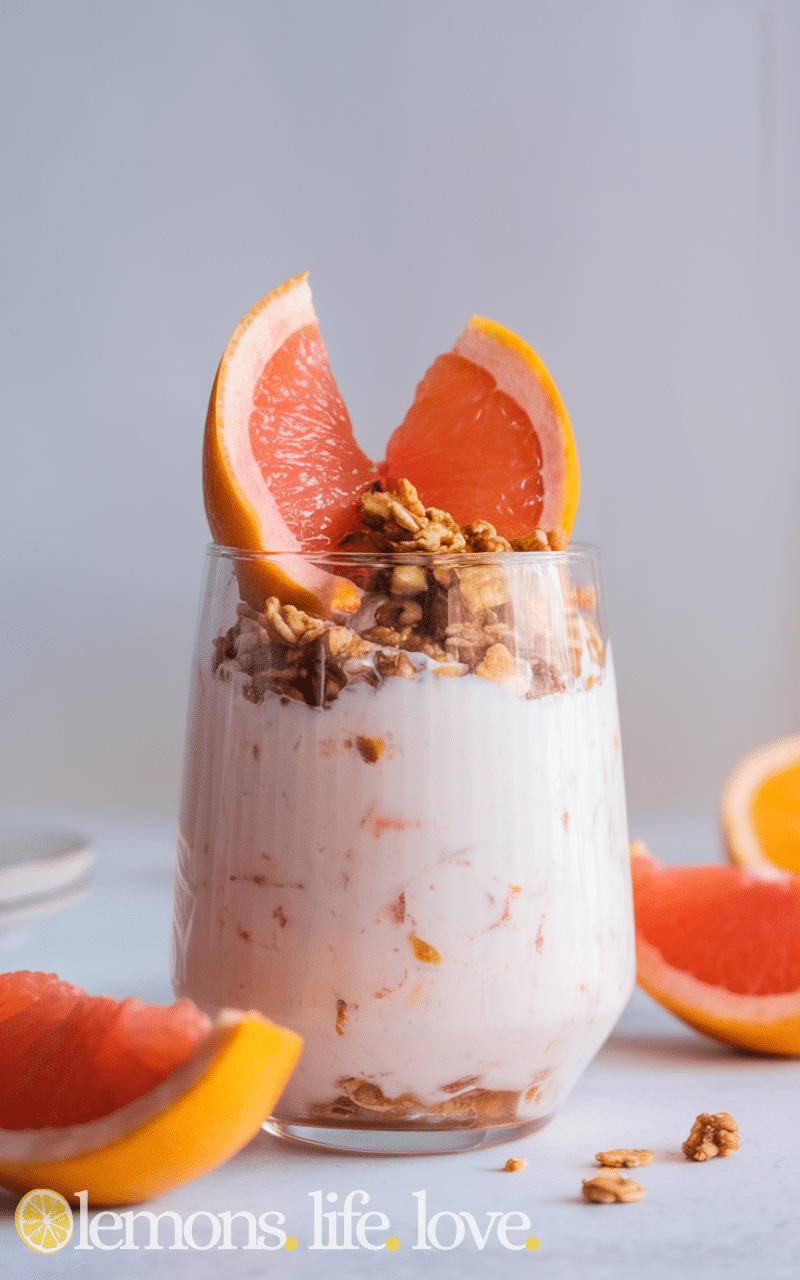 - In a glass, layer Greek yogurt at the bottom and then add grapefruit segments.