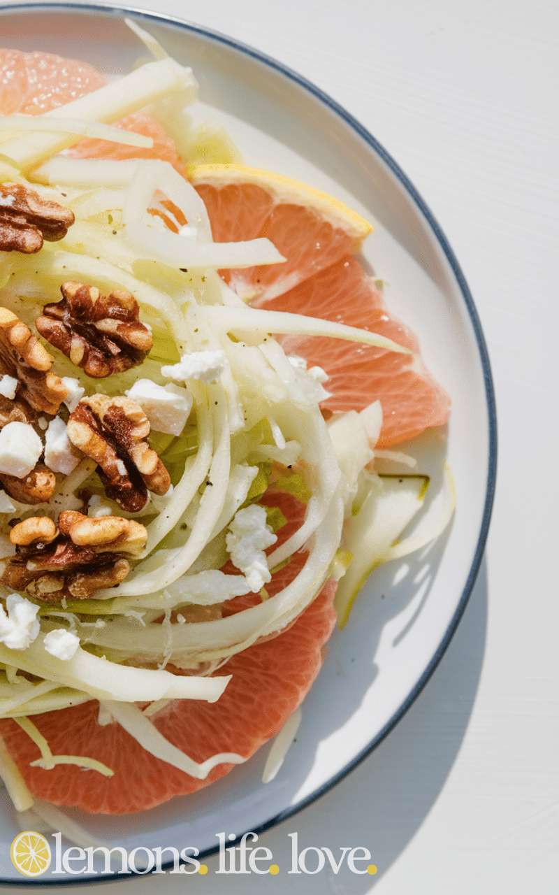 - In a large bowl toss fennel cabbage and grapefruit segments.