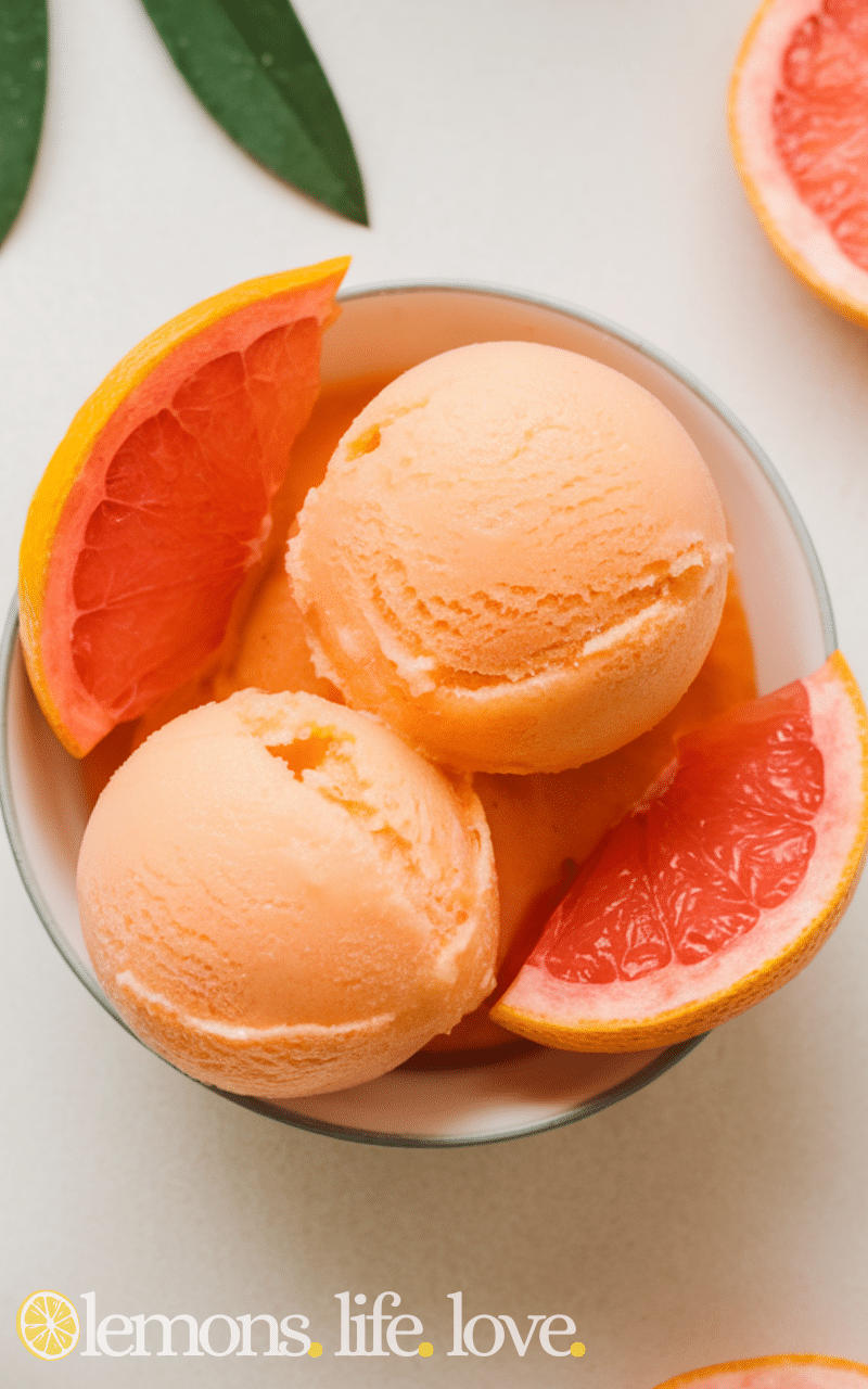 Grapefruit sorbet is light refreshing and tangy and also a perfect dessert because this grapefruit recipe is simple and naturally sweetened which makes it ideal for hot days when you want a fruity icy treat because the tartness of grapefruit balances the sweetness for a deliciously satisfying dessert.