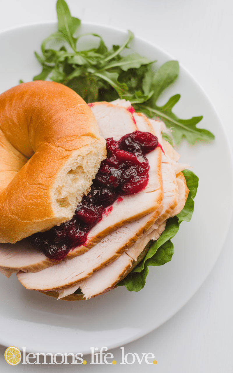 Tender turkey slices with tangy cranberry sauce, cream cheese or arugula for creaminess, and a festive sweet-savory combination.