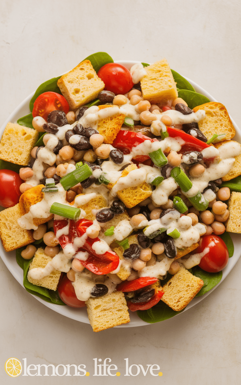 The Veggie Lovers Cornbread Salad is colorful and healthy and it mixes crumbled cornbread with a variety of fresh vegetables and it is light and refreshing and perfect for lunch or potlucks and this cornbread salad is easy to make and full of crunchy textures and natural flavors and you can serve this cornbread salad chilled and it tastes even better when flavors meld together and it is a great way to enjoy cornbread salad in a fresh and wholesome way.
