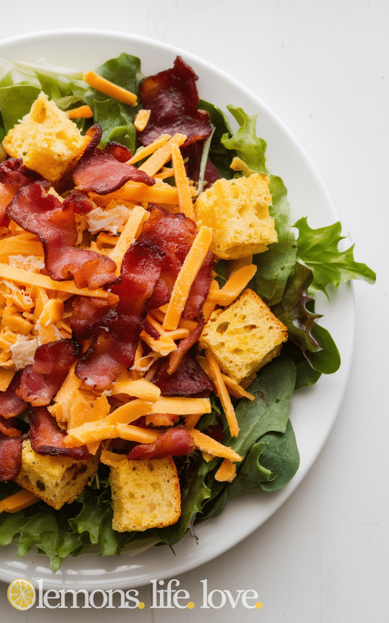 This Bacon Cheddar Cornbread Salad is rich and savory and it combines crumbled cornbread and crispy bacon and melted cheddar cheese and diced celery and onion and it is perfect for hearty meals and parties and this cornbread salad is easy to make and will impress your guests and it is full of flavor and textures and you can serve this cornbread salad warm or chilled and it always tastes amazing.