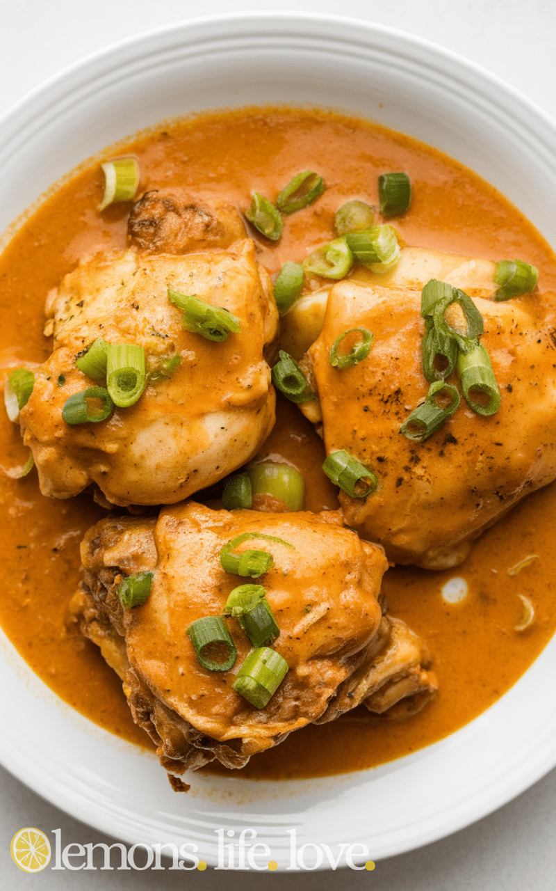 This coconut curry chicken thigh crockpot recipe is creamy, fragrant, and easy because the chicken thighs cook slowly in coconut milk and curry spices, making them tender and flavorful with minimal effort.