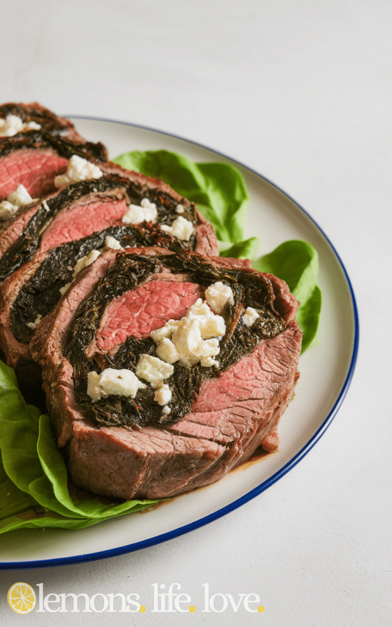 The Spinach and Feta Stuffed Oven Beef Tenderloin is flavorful and fun and it is filled with a mixture of spinach and feta cheese that melts inside the beef while it roasts in the oven and it stays tender and juicy and it is a perfect centerpiece for a dinner or holiday meal and it is one of the yummiest oven beef tenderloin recipes that adds a gourmet twist to a classic cut.