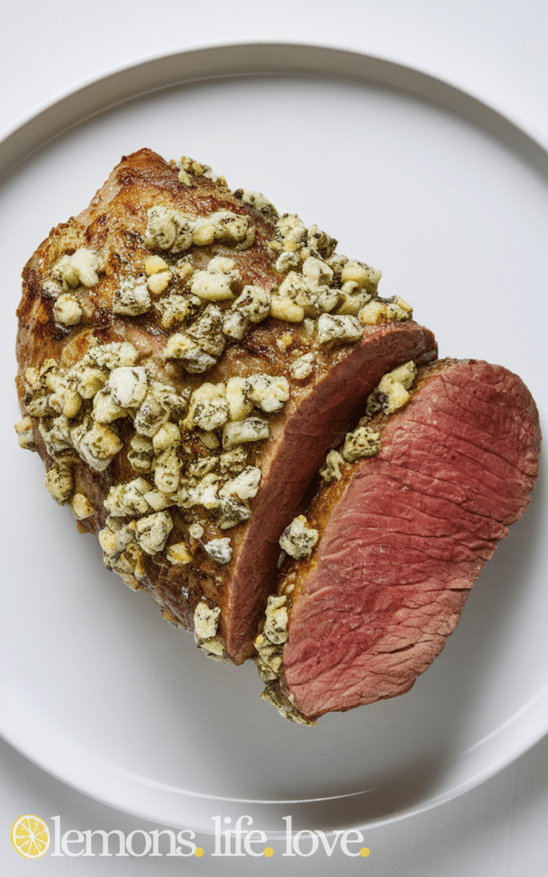 The Blue Cheese Crusted Oven Beef Tenderloin is rich and tangy and it features a creamy blue cheese crust that melts over the tenderloin while it roasts in the oven and it stays juicy on the inside and the cheese adds a delicious punch and it is perfect with roasted vegetables or mashed potatoes and it is one of the most decadent delicious oven beef tenderloin recipes for a special dinner or celebration.