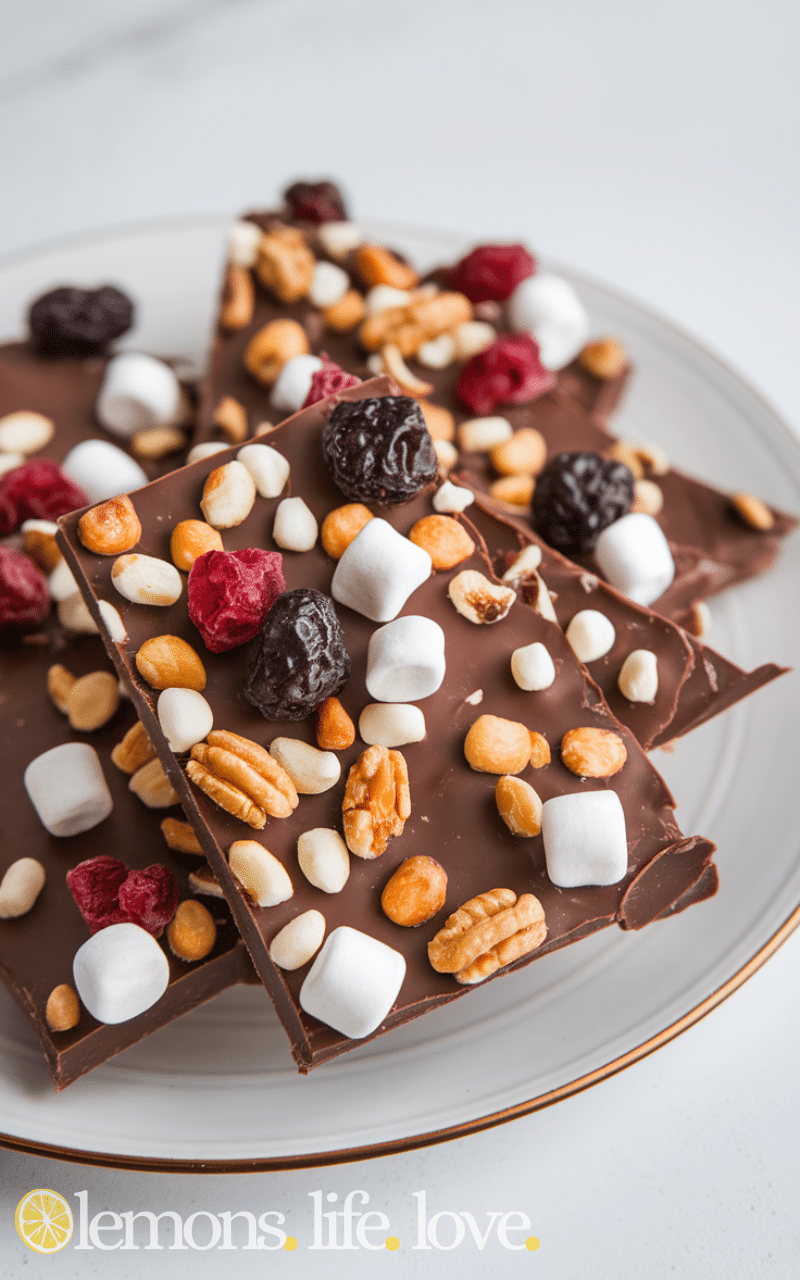 Chocolate bark is a simple and customizable dessert that enhances your dessert charcuterie board and you can add nuts dried fruits or candy on top and it is easy to break into pieces and your dessert charcuterie board will look festive and colorful and everyone can grab a piece and enjoy the chocolatey goodness and it makes your dessert charcuterie board fun and interactive and delicious and visually appealing.