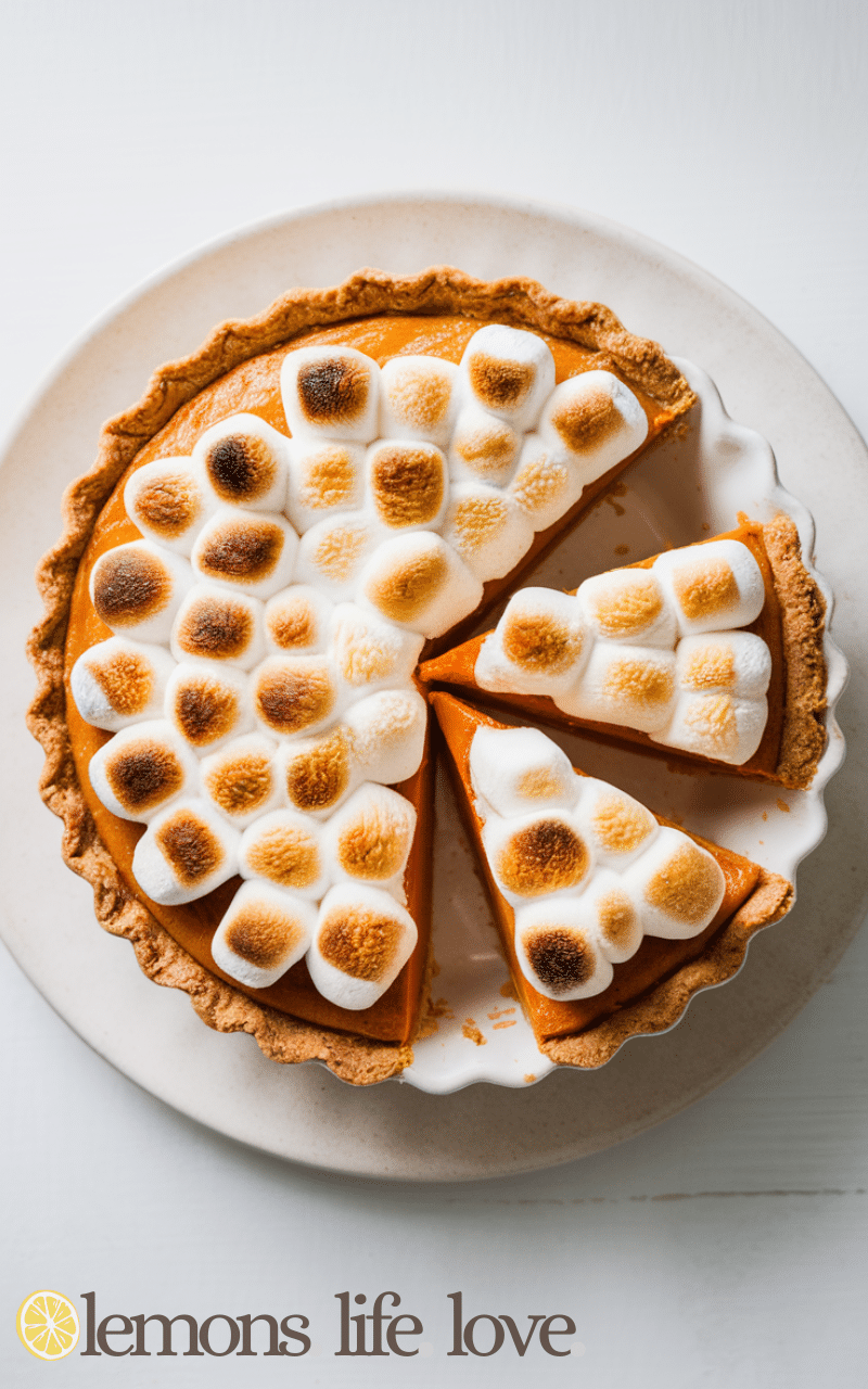 This sweet potato pie gets a gooey upgrade with toasted marshmallows on top which makes it taste like a campfire treat mixed with a cozy pie that’s perfect for holidays or special weekends.