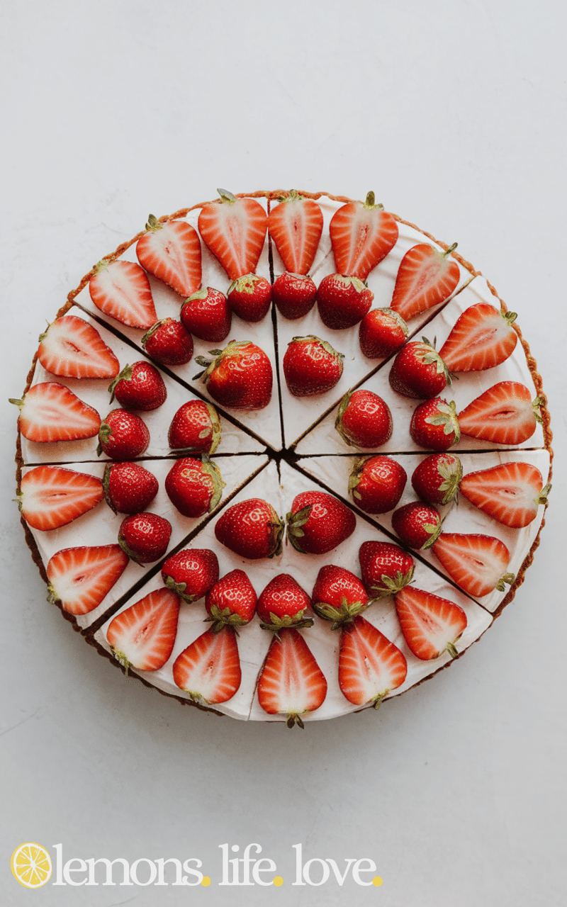 - Drizzle melted chocolate over cream layer then top with sliced strawberries.