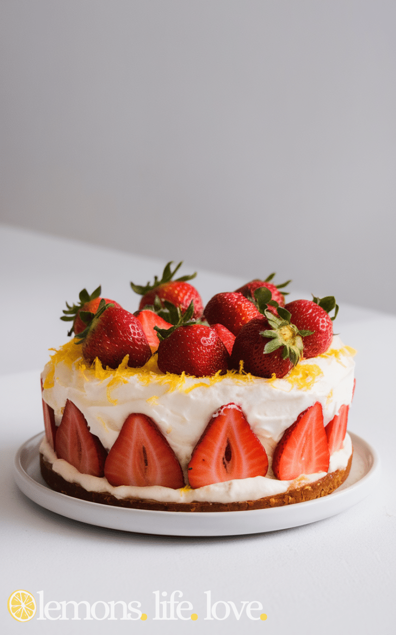 - Prepare lemon gelatin then mix with strawberries and pour over cream layer.