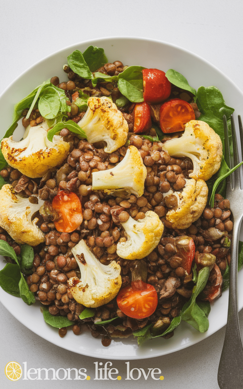 This winter salad brings hearty lentils and caramelized cauliflower together with herbs and lemon dressing so it’s earthy and comforting while still feeling healthy. It’s packed with protein and fiber so it makes a satisfying lunch or a perfect side dish for dinner during the cold season.