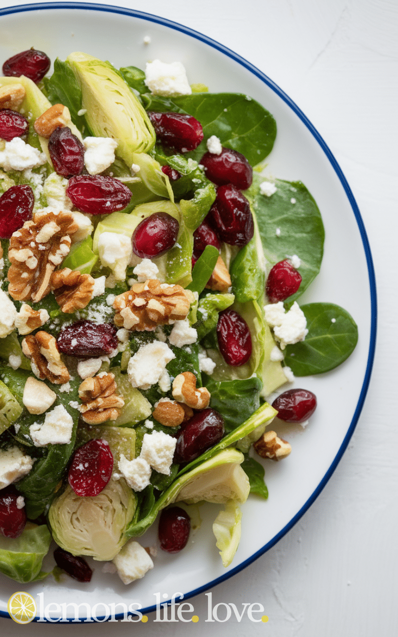 This winter salad proves Brussels sprouts can be fresh and delicious because when they’re shaved thin and tossed with cranberries and nuts and Parmesan, they turn into something bright and crisp. It’s crunchy and savory with a touch of sweetness so the winter salad feels festive and balanced.